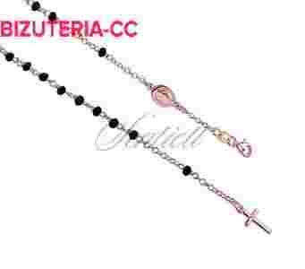 Srebrny różaniec modowy bransoletka pr.925 czarne