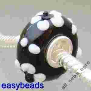 SREBRO 925 Szklany koralik modulowy CZARNY P44