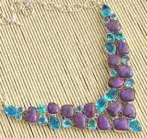 SREBRO 925 - TURKUS + TOPAZ - NASZYJNIK 104,1 g