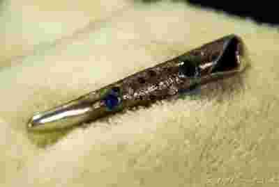 Ciekawa i niebanalna broszka wysadzana różnokolorowymi (białe, niebieskie i fioletowe) cyrkoniami w kształcie tutki :). W całości wykonana ze srebra próby 999, pusta w środku. Idealna do sweterka, bluzeczki lub eleganckiej marynarki. Gorąco polecam.