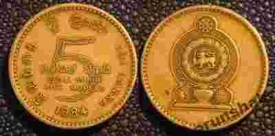 SRI LANKA / CEYLON 5 RUPEES 1984r RARE / 92 YY