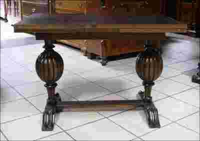 Zgrabny, niewielkich rozmiarów stolik/ława. Blat rozkładany przez rozsunięcie dwóch bocznych dosawek. Nogi zdobione bufiastymi, frezowanymi wstawkami..