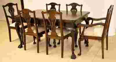 STÓŁ CHIPPENDALE ROZKŁADANY 6 KRZESEŁ DĘBOWY