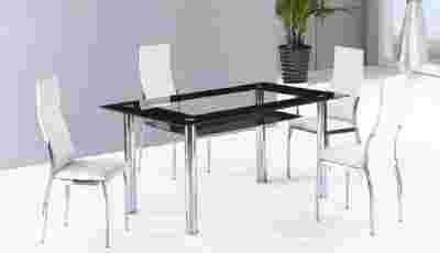 Przedmiotem sprzedaży są stoły. Wykonane z najwyższej jakości surowców. Blat stołu wykonany jest ze szkła hartowanego, a nogi stołu chromowane. Wysokość stołu dopasowana do standardów. W stole zastosowano czarne dodatki, które dają niepowtarzalny efekt w każdym mieszkaniu. Nogi maja zabezpieczenia przed uszkodzeniem paneli podłogowych, drewnianych podłóg, powierzchni lakierowanych i podłóg ceramicznych.