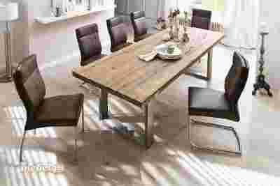 Ekskluzywny stół CASTILO to połączenie piękna, naturalności i doskonałego designu. Zastosowanie litego drewna dębowego z uwidocznioną piękną strukturą podkreśla niepowtarzalny charakter stołu. Szeroka gama rozmiarów i kolorów pozwala na zagospodarowanie każdego wnętrza. Podstawa wykonana ze stali szlachetnej szczotkowanej. Stół wpisuje się w najmodniejszy trendy tego sezonu czyli eko, rustykalny oraz eklektyczny. Pięknie wygląda w połączeniu z różnorodnymi krzesłami tapicerowanymi - na zasadzie kontrastu.