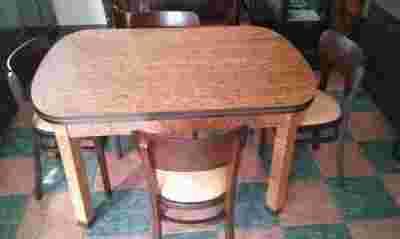 Stół i cztery krzesła w stylu art deco.