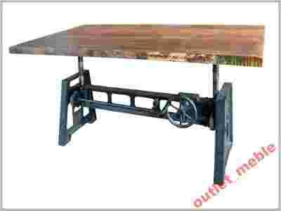 MATERIAŁ: drewno recyclingowe i stal (mechanizm korbowy do podnoszenia i obniżania blatu)