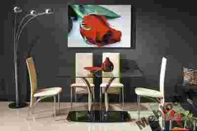 Stelaż metalowy/chrom + blat szkło hartowane.