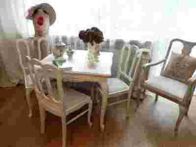 stół rozsuwany i 4 krzesła,bielone,shabby chic