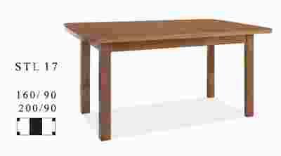 Całość wykonana z drewna bukowego, natomiast blat stołu wykonany jest z płyty MDF, wykończony laminatem.