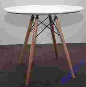 Blat stołu wykonany jest z MDF (materiał drewnopodobny) lakierowanego w kolorze białym na wysoki połysk. Powierzchnia blatu jest gładka jak lustro. Stelaż wykonany z bukowego drewna, łączenia metalowe malowane na kolor czarny.