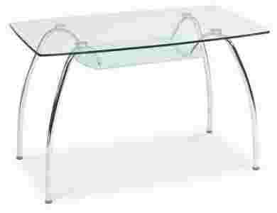 Mały prostokątny szklany stół na metalowym stelażu ze szklaną półką