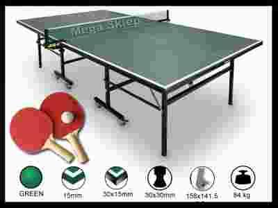 Bardzo solidny stół ping-pongowy przeznaczony do użytku w salach gimnastycznych lub w domach. Do wykonania użyto wysokiej jakości płyty mdf, a całość jest ustawiona na konstrukcji stalowej wykonanej z wytrzymalszych, 30mm profili stalowych. Mimo gabarytów stół jest bardzo łatwy do przechowywania dzięki możliwości złożenia oraz przewożenia na kółkach.