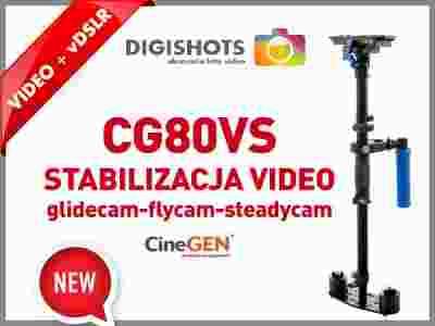 Glidecam CG80VS to poręczna stabilizacja wideo przeznaczona dla lustrzanek oraz kamer cyfrowych. Konstrukcja wykonana z aluminium przeznaczona głównie dla lekkich lustrzanek oraz kompaktowych kamer cyfrowych o masie od 1 do 6 kilograma. Łożyskowany przegub (5 łożysk) oraz dobra jakość wykonania gwarantują płynną, stabilną pracę układu i efektywną stabilizację. Stabilizator CG80VS umożliwia pracę z kamizelkami typu steadycam.