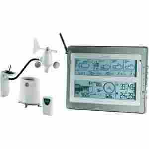 Stacja pogodowa, który wyświetla zarówno prognozy pogody i stacjonarne pogoda. O sygnału DCF otrzymasz prognozy pogody na dziś i na kolejne 3 dni na 60 regionów w Europie (470 miasta) każda dla dnia i nocy. Wyświetlacz kolejny dowód na ekstremalnych sytuacjach pogodowych zostały przedstawione. Oprócz prognoz Otrzymasz informacje o prędkości i kierunku wiatru, ciśnienie barometryczne, opadów, temperatury wewnątrz i na zewnątrz i wilgotności. Dzięki wbudowanej pamięci można zapisać około 200 danych pogodowych, korzysta z interfejsu USB do komputera przesyłane i wyświetlane na dołączonego oprogramowania.