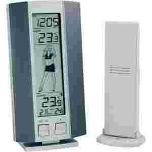 Stacja pogodowa wskazuje temperaturę wewnętrzną i zewnętrzną, a także sugeruje jak się ubrać stosując obrazkową, pięciostopniową skalę.
