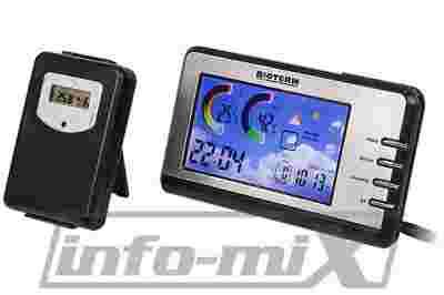 posiada szereg przydatnych funkcji pomiarowych. Wyświetlacz jest bardzo wyraźny i dostarcza najpotrzebniejszych informacji. W komplecie znajduje się zasilacz sieciowy umożliwiający stałe podświetlanie stacji. Czujka bezprzewodowa posiada swój własny wyświetlacz, na którym możemy odczytać temperaturę, wilgotność oraz kanał pracy, a także stan baterii zasilających. Stacja może współpracować jednocześnie z trzema czujkami bezprzewodowymi, które są dostępne w naszej firmie.