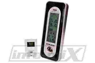 Zaawansowana technicznie profesjonalna stacja pogody firmy CARRIN. Firma znana jest na rynku z produkcji wszelkiego rodzaju zegarów elektronicznych charakteryzujących się prostotą obsługi, bardzo dobrą jakością wykonania i wyjątkowo atrakcyjną ceną. Prezentowany model stacji oferuje szeroką gamę funkcji. Urządzenie posiada bardzo duży prostokątny wyświetlacz o wyjątkowo dużym kontraście, wyświetlający wszystkie parametry jednocześnie. Cyfry są duże i wyraźne i w związku z tym bardzo łatwo można odszukać wszelkie potrzebne dane już przy minimalnej ilości światła. Stacja skonstruowana jest z myślą o zawieszeniu jej bezpośrednio na ścianie. Zegarek sterowany jest sygnałem DCF-77 za pomocą fal radiowych nadawanych z atomowego zegara wzorcowego umieszczonego w okolicach Frankfurtu.