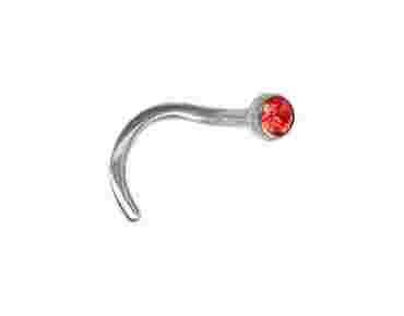 Stalowy kolczyk do nosa z kryształkiem czerwonym
