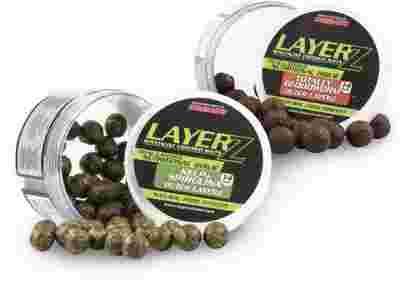 Hookbaits Layerz składa się z dwóch warstw o różnym zachowaniu w wodzie.Pierwsza warstwa zewnętrzna tworzy atrakcyjny bodziec-chmurę drobnych cząstek glonów i spiruliny.Druga wewnętrzna warstwa działa, jako klasyczna kulka proteinowa, która pozostaje na haku. Hookbaits Layerz Kelp oraz Spirulina posiada wysoką wartość odżywczą z bogatych substancji naturalnych minerałów i aminokwasów, które mają znaczący udział w dobrze reprezentujących się obu warstwach.
