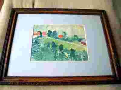Stara akwarela 1949 stara rama drewniana !
