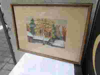 STARA AKWARELA WIEŚ ZIMĄ