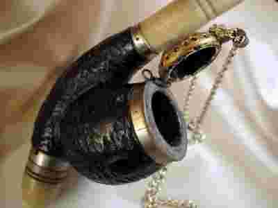 Stara fajka róg kość metal drewno sygnowana
