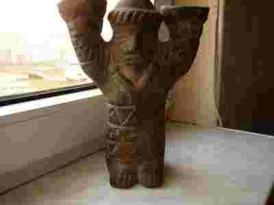 stara figura pokryta symbolami świecznik