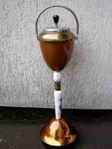 * STARA FRANCUSKA POPIELNICZKA * MIEDŻ PORCELANA *