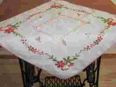 STARA HAFTOWANA SERWETA OBSZYTA KOLOROWĄ TAŚMĄ 55x