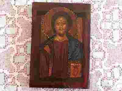 Stara ikona malowana na drewnie /deska/ 9x13x2,3cm