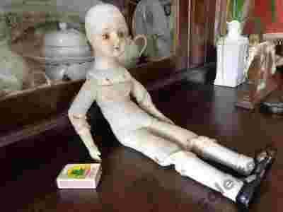 STARA LALKA , PORCELANOWE CZĘŚCI, WYPCHANY TORS