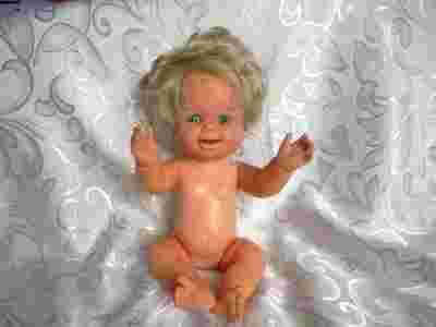 Stara lalka z ciekawym mechanizmem w rączce