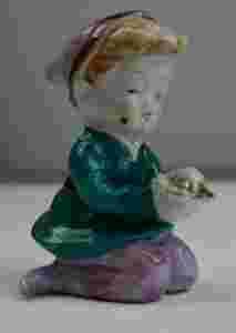 Stara, malowana figurka z porcelany chłopiec Elf