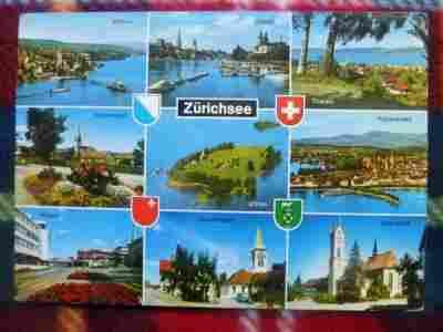 stara pocztówka - 33 - Zurich jeziorko, herby