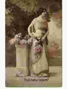 stara pocztówka, kobieta z kwiatami !!!