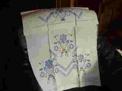 Stara, rustykalna, ręcznie wyszywana makatka.