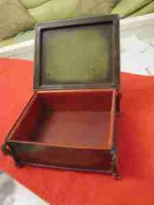 STARA SYGNOWANA KASETKA NA BIŻUTERIĘ - MOS.i BRĄZ