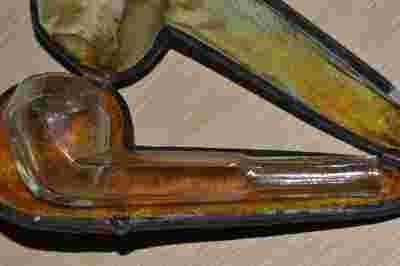 STARA SZKLANA FAJKA FUTERAŁ PRZEDWOJENNA