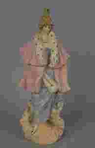 Figurka przedstawiająca kobietę prawdopodobnie z przełomu XIX i XX w. Wymiary; wys. 21 x 8,5 x 6 cm. Drobne defekty pokazane na zdjęciach. Polecam kolekcjonerom (G)