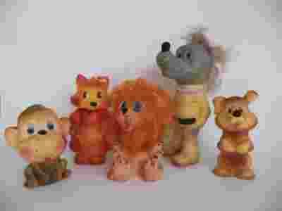 Stare gumowe zabawki PRL 'Wilk i Zając' itp