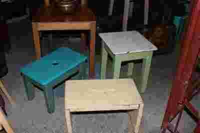 Stare, niebieskie małe krzesełko - ryczka