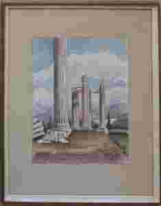 Starożytne ruiny - akwarela sygn. nieczytelnie