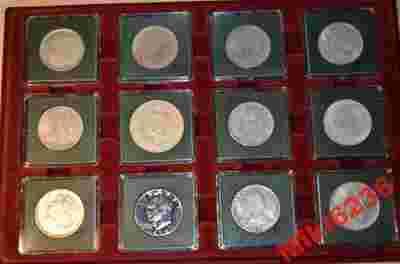 Dzisiaj kolejny zestaw (12 monet). Monety zapakowane w blistry/ klipy kwadratowe, na bordowej tacce.