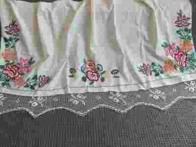 Starodawna firanka z kolorowymi ręcznymi haftami