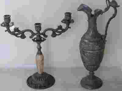 STARY CYNOWY KOMPLET KARAFKA / ŚWIECZNIK