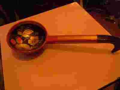 STARY CZERPAK DREWNIANY MALOWANY LUDOWY