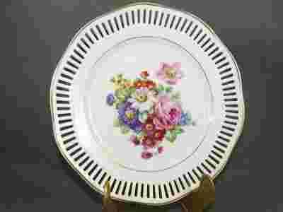 STARY DEKORACYJNY TALERZ-AŻUR I KWIATUSZKI