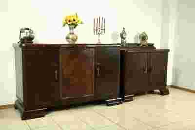 Zarówno bufet jak i pomocnik osadzone zostały na pięknie profilowanych, masywnych nogach, ...