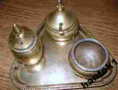 Stary komplet do przypraw / mosiądz/ 5 elementów